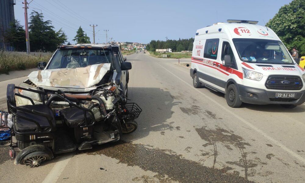 Kaza, akşam saatlerinde Keşan- Enez karayolu 1’inci kilometrede meydana geldi. Keşan’dan Enez yönüne gitmekte olan S.G. yönetimindeki 59 AAK 530 plakalı kamyonet, emniyet şeridinde ters yönde ilerleyen ve ana yola çıkan A.M.A.nın kullandığı elektrik bisiklete çarptı. Kazada, A.M.A. ve arkasında oturan arkadaşı B.T. yaralandı. İhbar üzerine kaza yerine polis ve sağlık ekipleri sevk edildi. Yaralılar, ihbar üzerine gelen ambulanslarla Keşan Devlet Hastanesi’ne kaldırılarak, tedaviye alındı. Kamyonet sürücüsü S.G., ifadesi alınmak üzere emniyete götürüldü. Polisin kazayla ilgili incelemesi sürüyor.