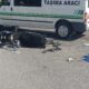 • Düzce'de, D-100 kara yolunda kamyonun üzerinden geçtiği motosikletteki Suriye uyruklu Hasan Kalaji (17) hayatını kaybederken, ağabeyi Cemil Kalaji (29) yaralandı. Fotoğraf: Tezcan SOLMAZ / Düzce, (DHA)