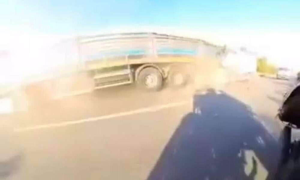 Öte yandan kamyonun TIRa çarptığı anlar seyir halindeki bir motosiklet sürücüsünün kask kamerasına yansıdı. Görüntülerde, kamyonun TIRa hızla çarptığı yer alıyor.