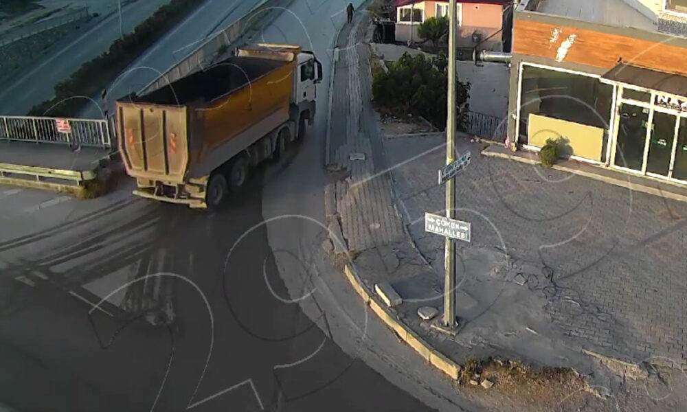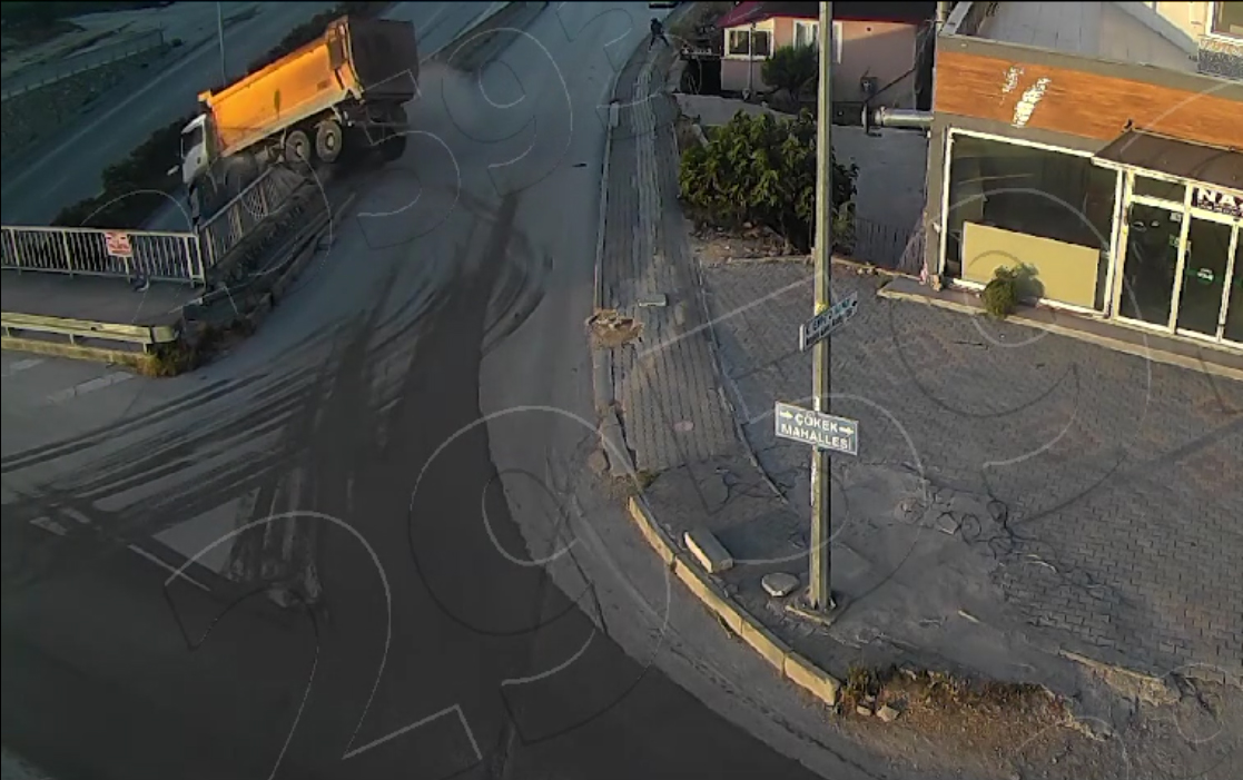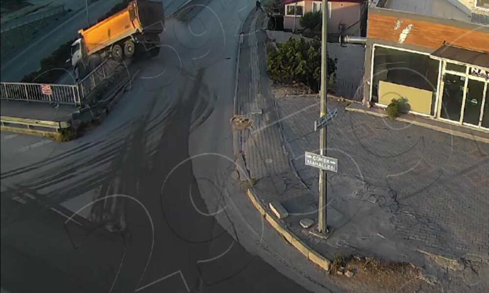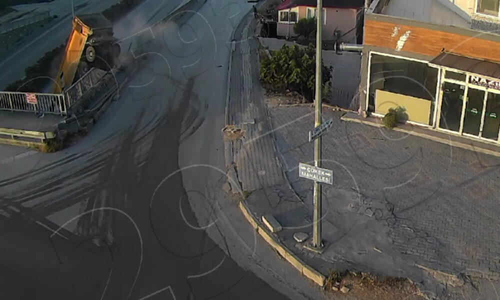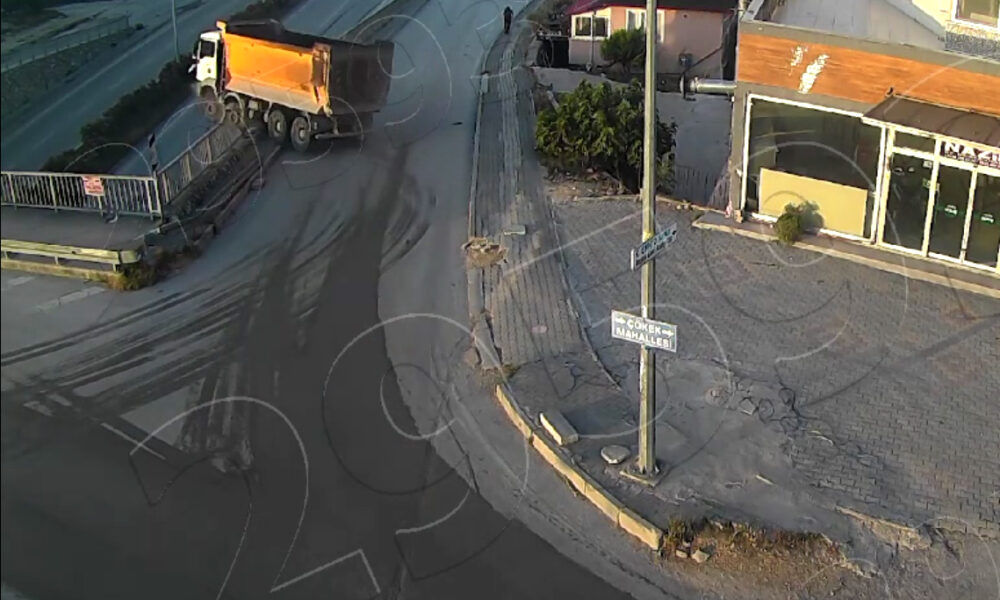 Kamyonun üst geçitten uçtuğu kaza kamerada