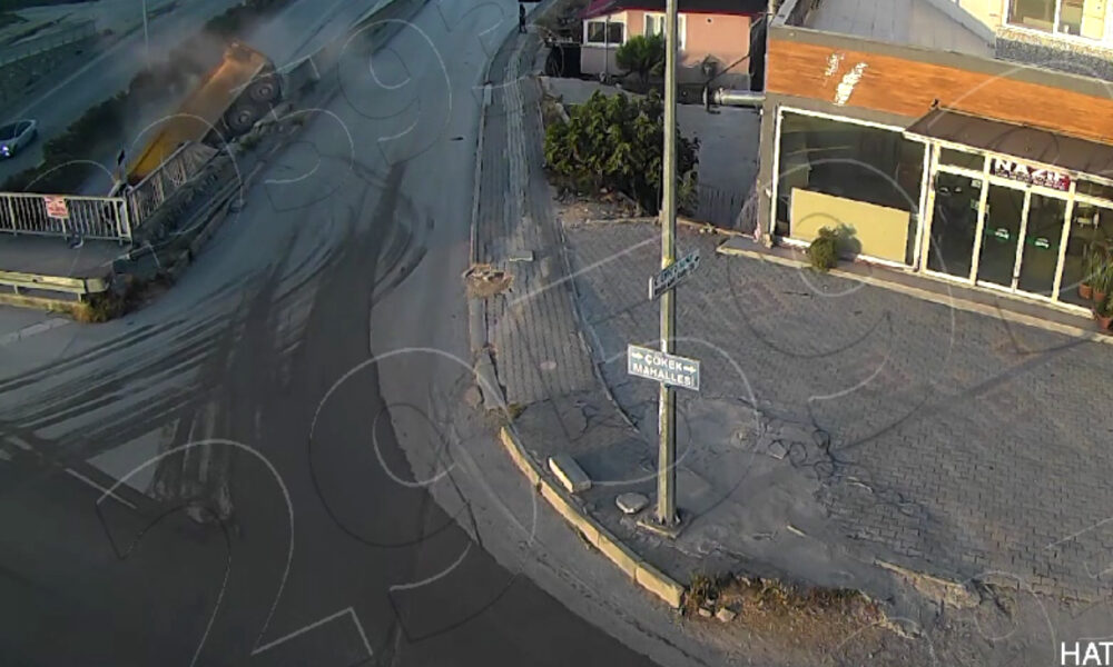 Kaza, 9 Mayıs’ta Defne ilçesi Çekmece Üst Geçidinde meydana geldi. Çevre yoluna girerken sürücüsünün kontrolünü yitirdiği 31 ADG 545 plakalı hafriyat kamyonu, üst geçitten 5 metre yükseklikten çevre yoluna düştü. Kazada kamyonun şoför yaralandı.