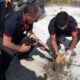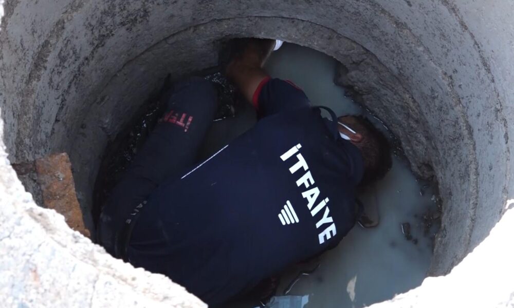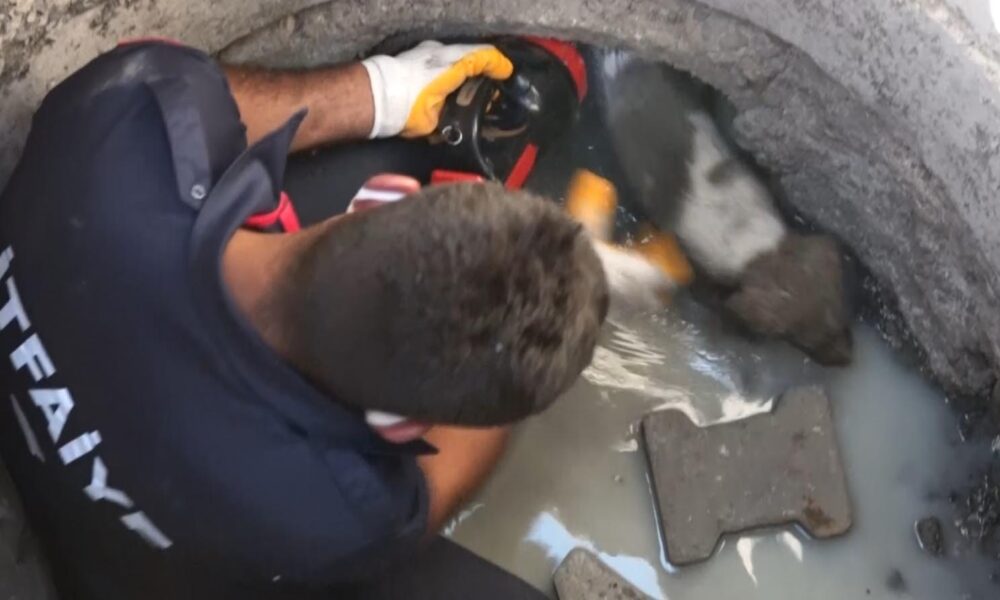 Kanalizasyon çukurundaki yavru köpek, 4 saatlik çalışma ile kurtarıldı