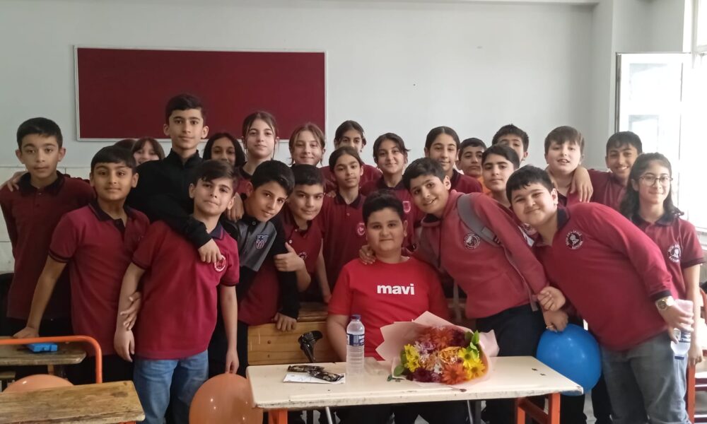 Batman'da Ewing Sarkomu ile mücadele ettiği için okula gidemeyen Muhammed Yasin Serik (12), (ortada, kırmızı tişörtlü) evde aldığı eğitimler sayesinde İlköğretim ve Ortaöğretim Kurumları Bursluluk Sınavı'nı kazandı.Fotoğraf: Batman, (DHA)