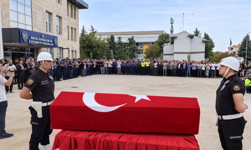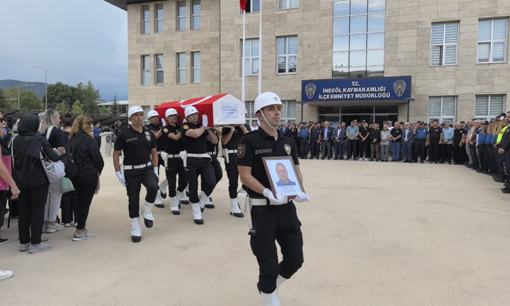 30 yıllık polis memuru için İlçe Emniyet Müdürlüğünün bahçesinde tören düzenlendi. Törene Kaymakam Eren Arslan, Belediye Başkanı Alper Taban, Başsavcı Veli Ecir, İnegöl Ticaret ve Sanayi Odası Başkanı Yavuz Uğurdağ, İl ve ilçe Emniyet Müdürlüğü personelleri ile Eryaşarın ailesi ve yakınları katıldı. 2 çocuk babası Aydın Eryaşar, buradaki törenin ardından Alanyurt Yeni Mahalle Camiinde kılınan cenaze namazının ardından İnegöl Alanyurt Kent Mezarlığına defnedildi.