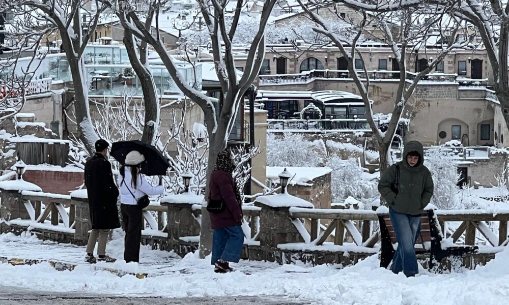 Hava sıcaklıklarının mevsim normallerinin altına düştüğü Kapadokyada sağanak, yerini kar yağışına bıraktı. Bölgedeki peribacaları, beyaza büründü. Göreme başta olmak üzere Ürgüp, Zelve ve Uçhisar gibi bölgeleri ziyaret eden turistler, kar yağışı sonrası Kapadokyanın tadını çıkardı. Turist grupları, kar yağışının ardından beyaza bürünen Kapadokyadaki vadilerde fotoğraf çektiriyor.
