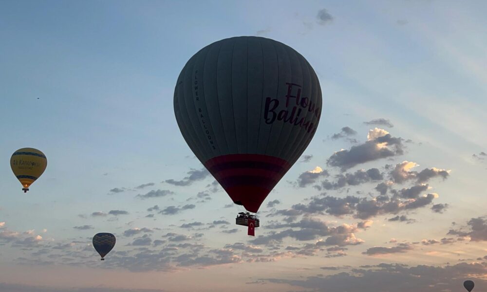 Kapadokya’da balonlar, Türk bayrakları ile havalandı