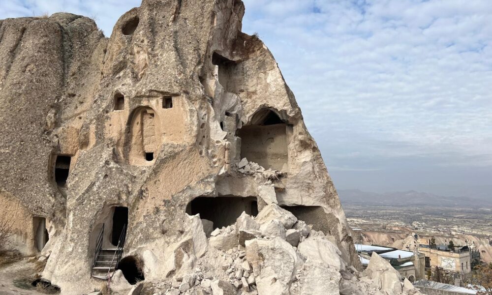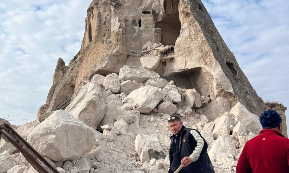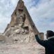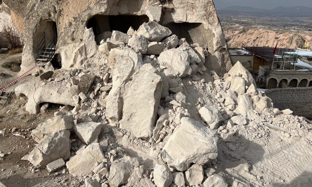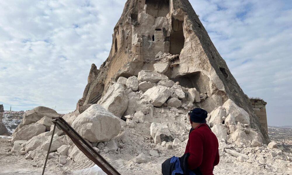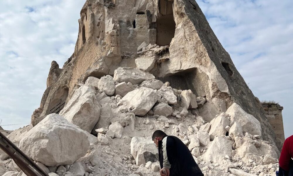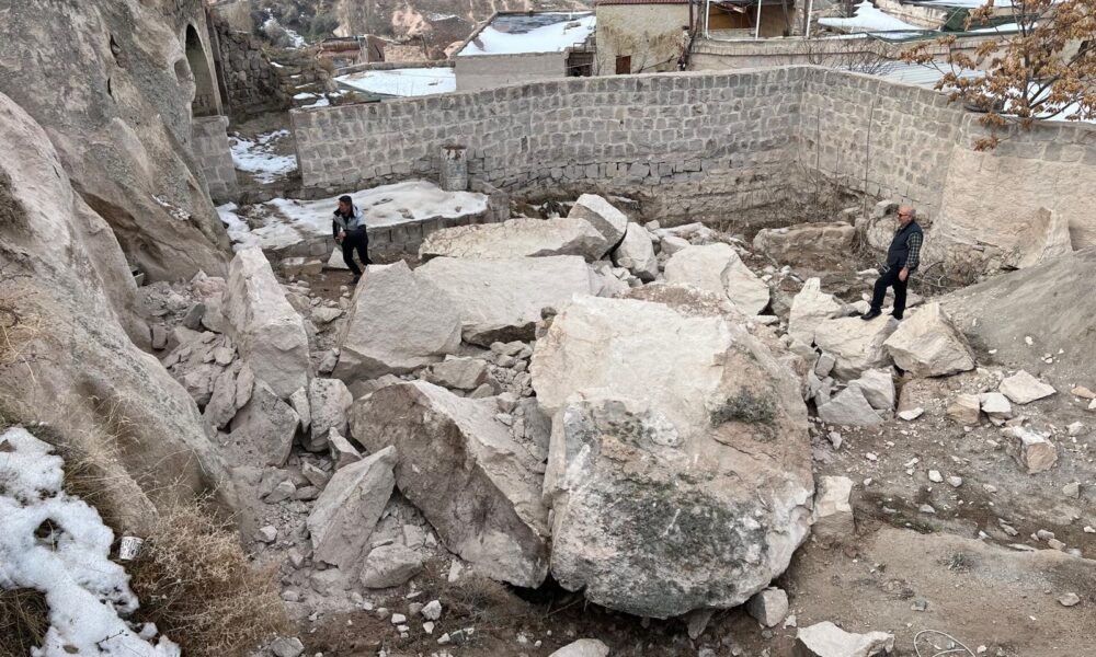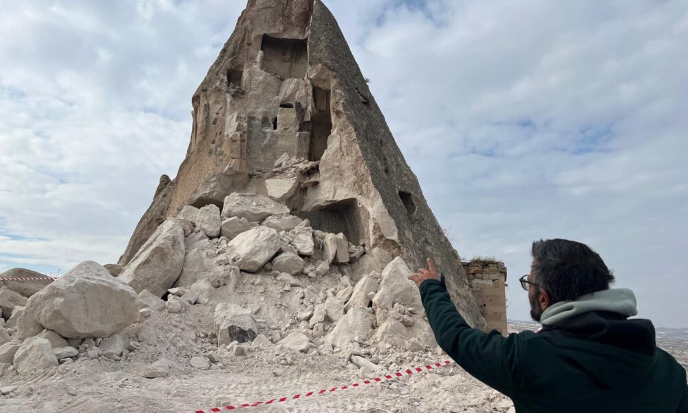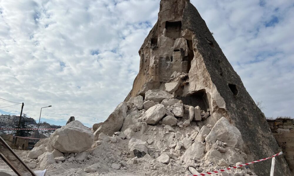Kapadokya’da peribacasının yıkılma anı kamerada