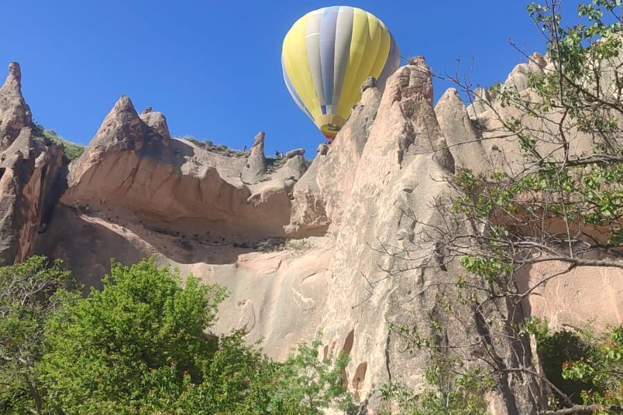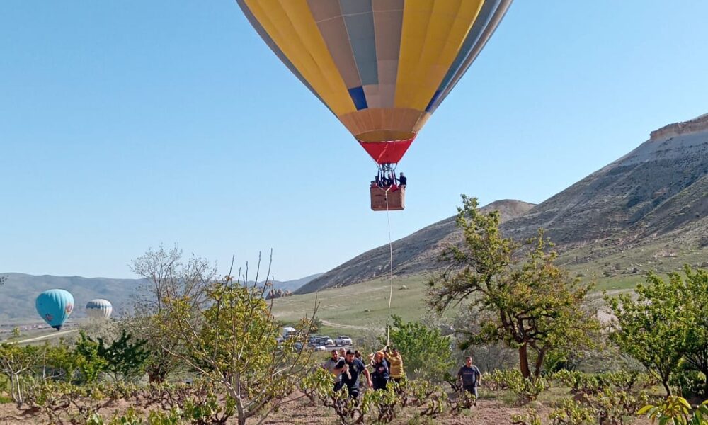Kapadokya’da sıcak hava balonu, kayalıklara zorunlu iniş yaptı