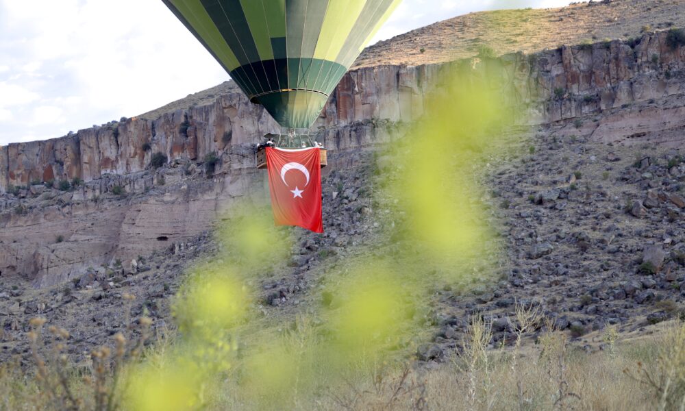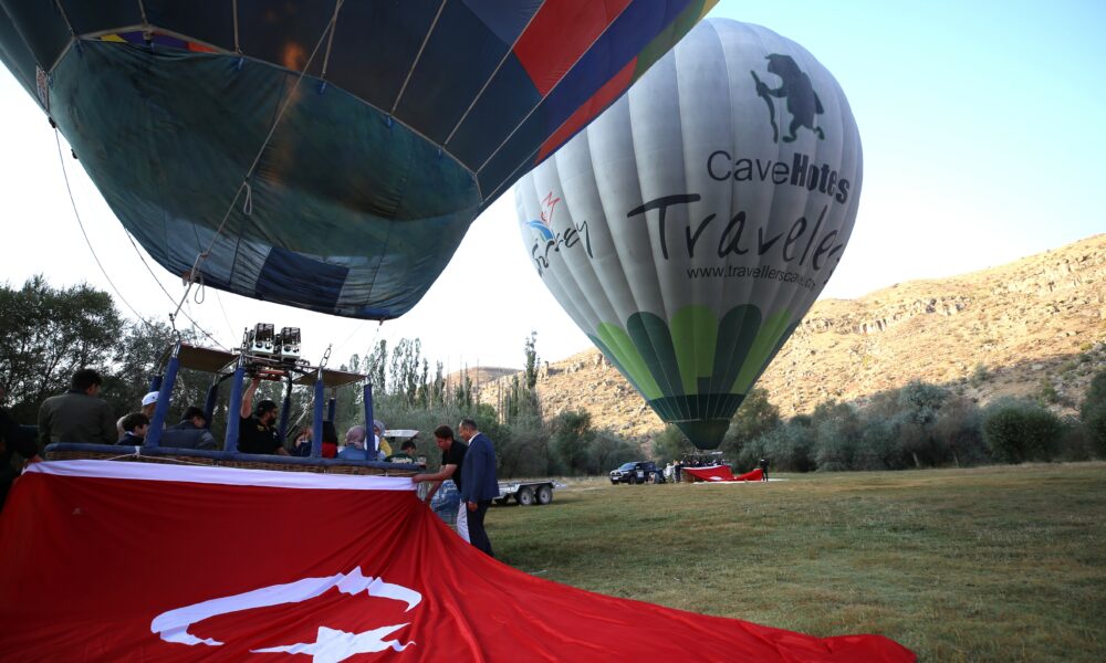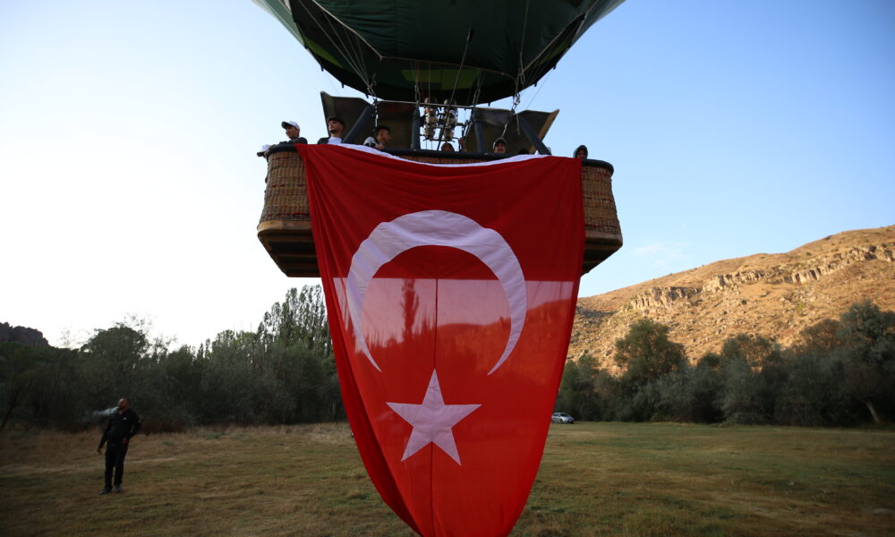 Kapadokya’da Türk bayraklı balonlar, 30 Ağustos için havalandı