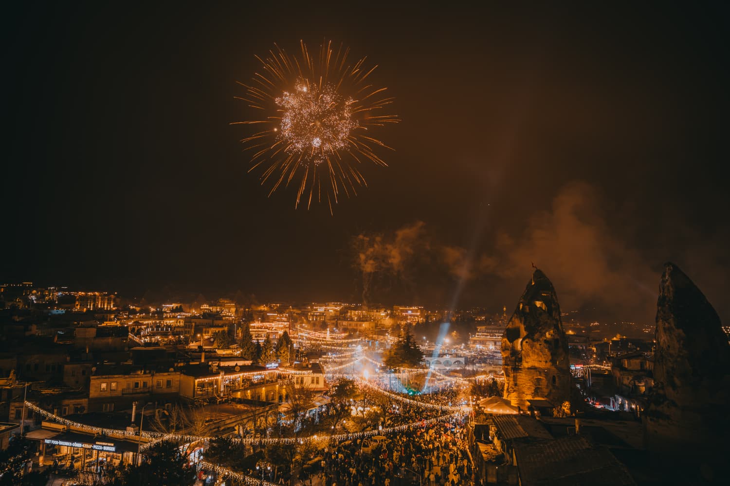 Kapadokya’da yeni yıla havai fişek eşliğinde eğlenerek girdiler/Ek fotoğraflar