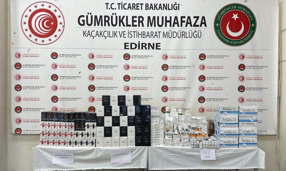 Edirne Gümrük Muhafaza Kaçakçılık ve İstihbarat Müdürlüğü ekipleri, Ticaret Bakanlığının kullandığı analiz programlarıyla yaptığı risk değerlendirmesinde, şüpheli olarak değerlendirdiği TIRı takibe aldı. Yurda giriş yapmak üzere Kapıkule Sınır Kapısına gelen meyve yüklü soğutucu TIR, sevk edildiği X-ray taramasında şüpheli yoğunluk tespit edildi. Hangara çekilen TIRda yapılan aramada; meyvelerin içine gizlenmiş, beyan edilmeyen, faturasız 1438 elektronik sigara, 10 bin 500 elektronik sigara atomizeri ile 28 bin 654 ilaç ele geçirildi. TIR şoförü gözaltına alındı, soruşturma sürüyor.