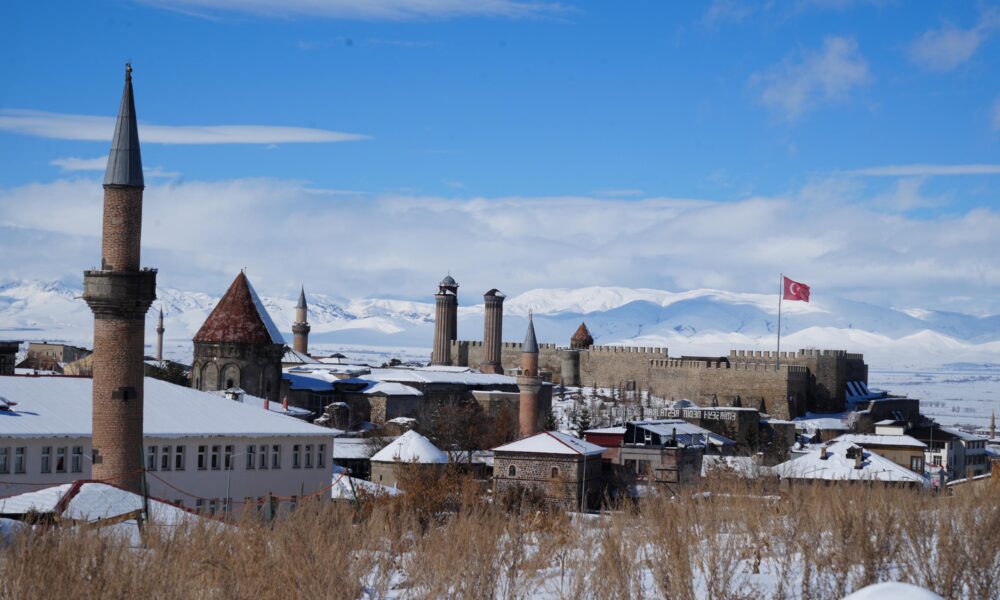 Bu sırada kar altında kalan Erzurum ve tarihi yerleri dron kamerasıyla görüntülendi. Yoğun kar yağışının ardından, beyaz örtüyle kaplanan Çifte Minareli Medrese, Erzurum Kalesi ve Yakutiye Medresesi seyrine doyumsuz manzara oluşturdu.