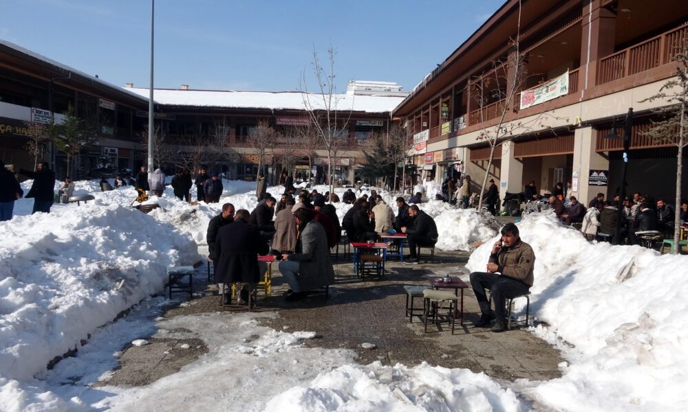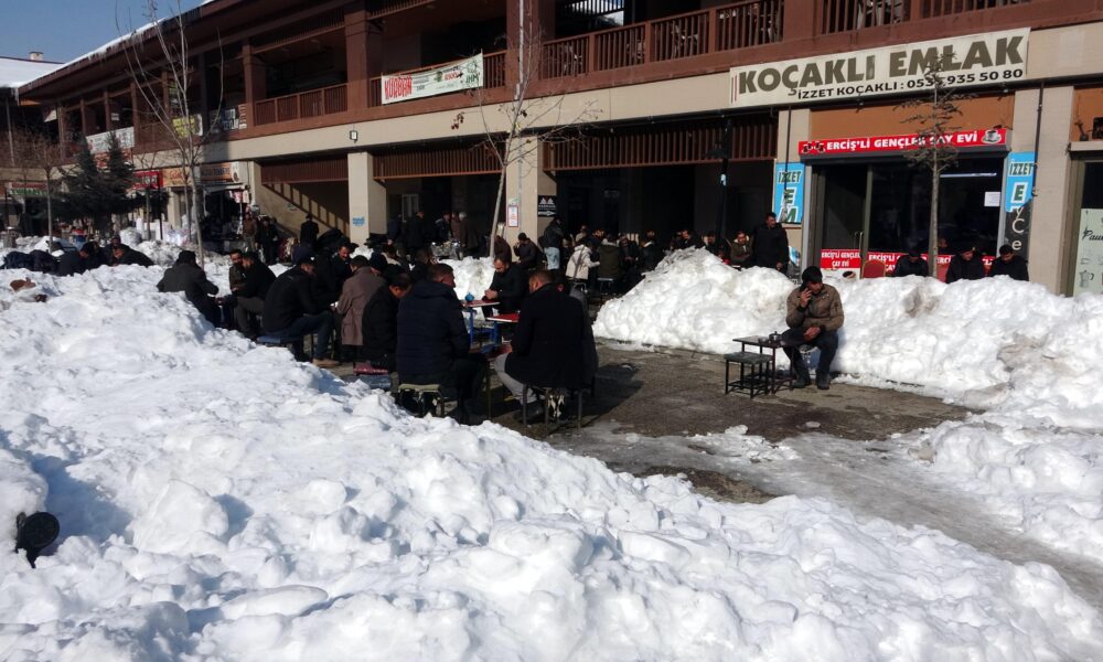 Kentte geçen hafta etkili olan yoğun kar yağışı, hayatı olumsuz etkiledi. Erciş ilçe merkezinde de kar kalınlığı yer yer 80 santimetreye ulaşırken, yüksek kesimlerde 2 metreyi aştı. Kar yağışı kimi vatandaşlar için çileye dönüşürken; ilçede esnaf, kar kütlelerinin arasında masa kurup, çay içerek sohbet etti. İlçede 20 yıldır çay ocağı işlettiğini belirten Fırat Kandemir, “İlçemizde yoğun bir kar yağışı oldu. Kar kalınlığı merkezde yer yer 80 santimetreye kadar ulaştı. Biz de bazı esnaf arkadaşlarla işletmemin önündeki boş alanda masa kurduk, etrafını kar kütleleriyle ördük. Bu ilginç görüntü çevredeki insanların da dikkatini çekti. Çalışmamızdan sonra müşteri sayımız arttı” dedi.