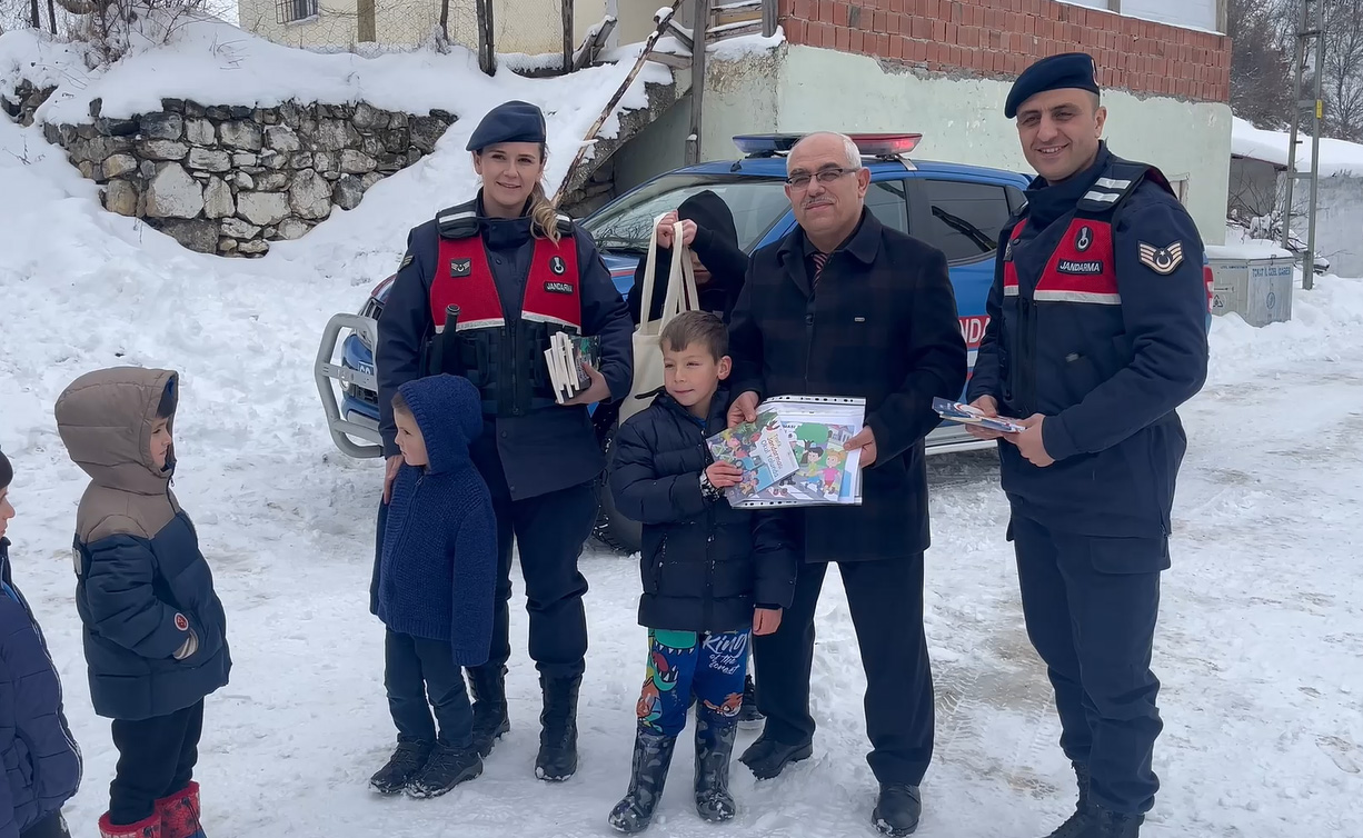 Kar nedeniyle okula gidemeyen öğrencilerin karnelerini jandarma dağıttı