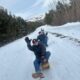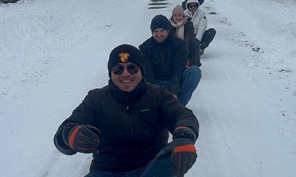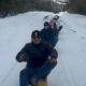 Kar üstünde piknik; mangal yakıp, otomobilin çektiği kızaklarla kaydılar
