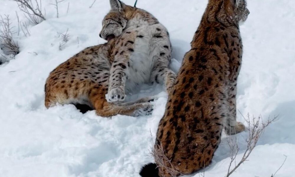 Keşiş Dağları’nda dron kamerasıyla görüntü çeken Mustafa Başgöze, karlı arazide 2 vaşağı kayda aldı. Başgöze, Dünya Doğa ve Doğal Kaynakları Koruma Birliği (IUCN) kırmızı listesinde yer alan vaşak ailesinin 2 üyesinin görüntülerini, sanal medya hesabından paylaştı. Görüntüler, büyük ilgi gördü.