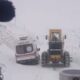 Kara saplanan ambulans iş makinesiyle kurtarıldı
