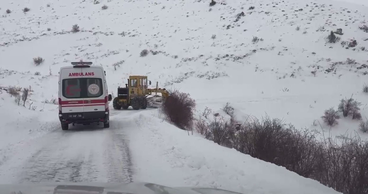 Kentte etkili olan kar yağışı hayatı olumsuz etkiledi. İl genelinde aralıklarla süren kar yağışı nedeniyle karla kaplanan yollarda sürücüler zaman zaman zor anlar yaşadı. Şehir merkezine 38 kilometre uzaklıktaki Yeniköyde aniden rahatsızlanan bir vatandaşı evinden almak için yola çıkan ambulans, karla kaplı köy yoluna saplanarak mahsur kaldı. Ambulansın ilerleyemediği yönündeki ihbar üzerine Bayburt İl Özel İdaresi ekipleri bölgeye sev edildi. İş makineleri eşliğinde yürütülen kar temizleme ve yol açma çalışmaları sonucunda ambulans, mahsur kaldığı yerden kurtarıldı. Yolun açılmasıyla köye ulaşan sağlık ekipler, hastaya ilk müdahalesinin ardından hasta, Bayburt Devlet Hastanesine ulaştırılarak tedaviye alındı.