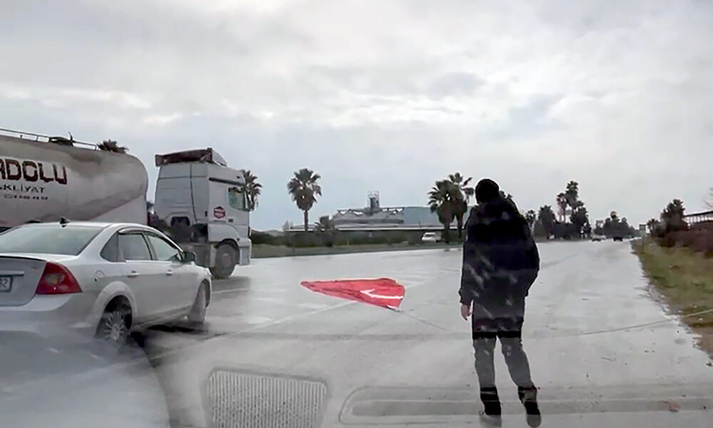 Tarsus ilçesi D400 kara yolu kenarında bulunan gönderdeki büyük Türk bayrağı, şiddetli rüzgar nedeniyle bulunduğu yerden kopup, yola düştü. Yerdeki Türk bayrağını gören sürücüler, araçlarını durdurdu. Otomobillerinden inen 2 sürücü, Türk bayrağını kaldırarak katlayıp, güvenli bir alana bırakarak, yetkililere bilgi verdi. Bayrağın düştüğü noktada bekleyen sürücüler, daha sonra yollarına devam etti. O anlar cep telefonu kamerasıyla kaydedildi.
