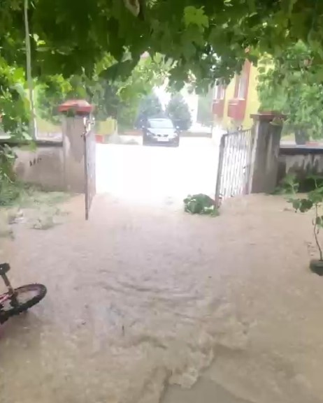 • Karabük'te etkili olan sağanak sonrası birçok yolda ve apartman girişinde su baskınları yaşandı. Fotoğraf: Karabük, (DHA)