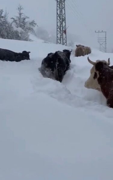 • Eflani ilçesinde ise karların arasından yürüyen büyükbaş hayvanlar cep telefonu kamerasına yansıdı. Fotoğraf: Eflani,(DHA)