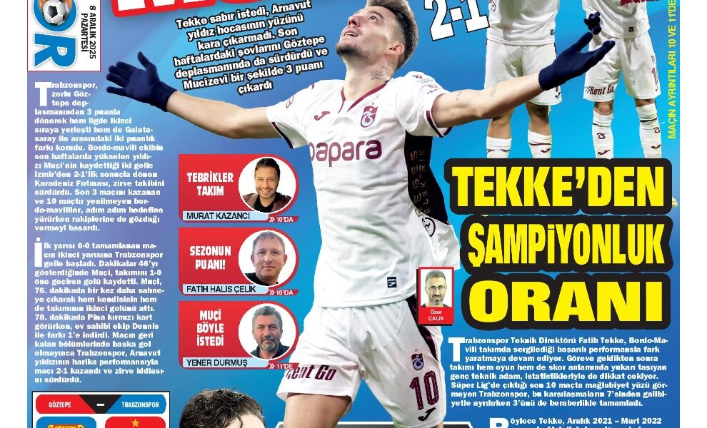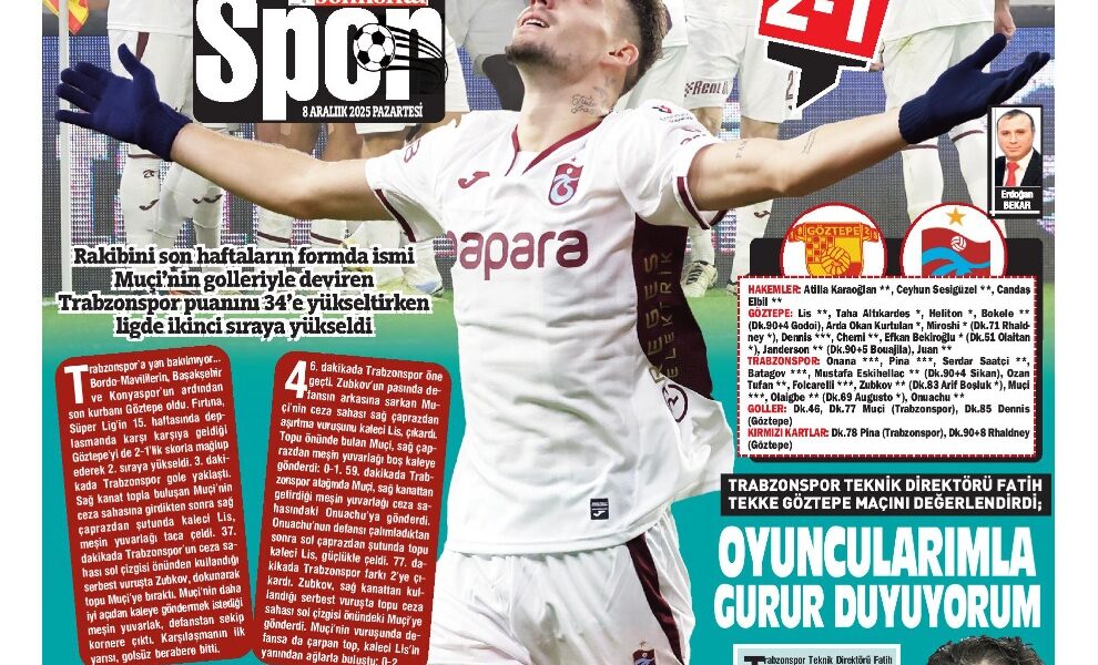 Trabzon’da yayın yapan yerel gazeteler de Göztepe karşısında deplasmanda alınan galibiyeti manşetlerine farklı başlıklarla taşıdı. Manşetlerde Muçi’nin performansı ön plana çıktı. Yerel basında öne çıkan başlıklar şu şekilde: