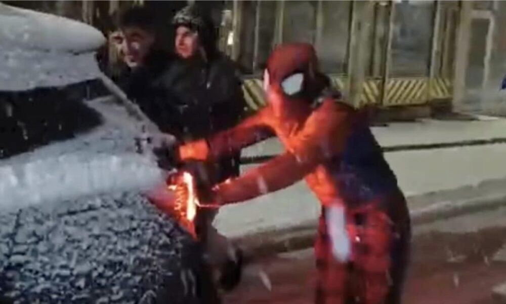 Türkiyeyi Örümcek Adam kostümüyle gezme hayalini gerçekleştirmek için memleketi İzmir’den yola çıkan Ayaz Salih Koçun, 69’uncu durağı Bitlis oldu. Adilcevaz ilçesinde sokaklarda gezen Koç, kar yağışı nedeniyle yolda kayıp ilerleyemeyen bir aracı fark etti. Ayaz Salih Koç, çevredekilerle birlikte aracı iterek sürücünün yoluna devam etmesine yardımcı oldu. Kısa sürede bulunduğu yerden kurtarılan araç, güvenli bir şekilde yoluna devam etti. Kaydedilen o anlar, sanal medyada ilgi gördü.
