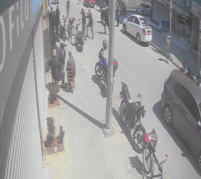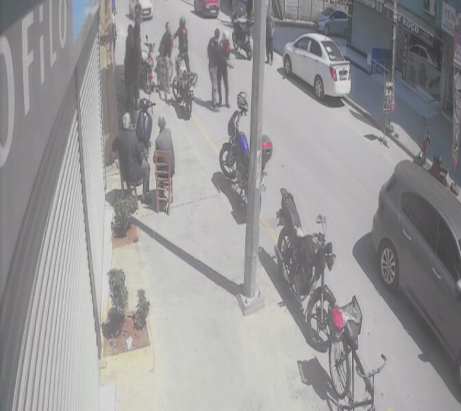 Öte yandan olay anı ise çevredeki iş yerinin güvenlik kamerasına yansıdı.