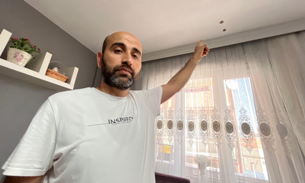 • Bursa'da babalarından miras kalan 5 katlı binanın 4'üncü katında oturan Bekir Ö. (38), üst kattaki dairede yaşayan kardeşi Ali Ö. (35) tartıştı. Ali Ö.'nün hiltiyle evinin tavanları deldiğini belirten Bekir Ö., şikayetçi oldu. Fotoğraf: Bursa, (DHA)