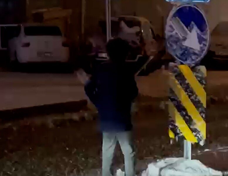 Karla kaplanan trafik levhalarını temizleyen 12 yaşındaki Kadir Emin, takdir toplandı