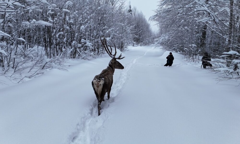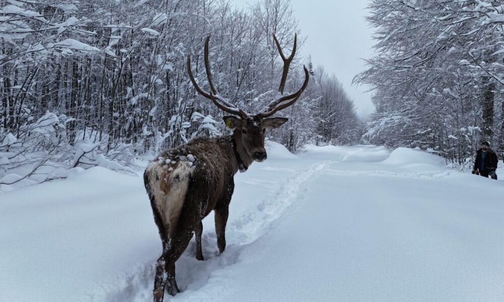 Samanlı Dağlarının 1640 rakımlı zirvesi Kartepenin eteklerindeki Kuzuyayla Tabiat Parkı, karla kaplandı. Kar kalınlığı 50 santimetreyi geçti. Bir kızılgeyiğin karla kaplı alanda yürüdüğü anlar, dron ile görüntülendi.