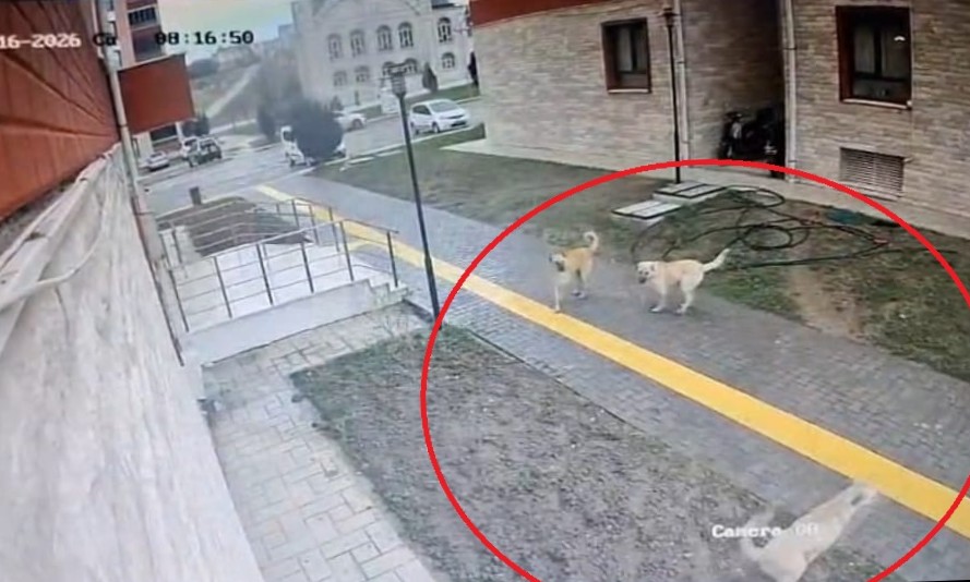 Karne almaya giderken sokak köpekleri peşine takılınca apartmana sığındı