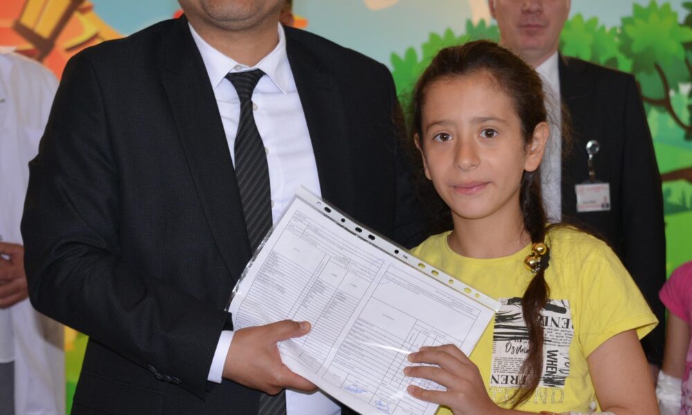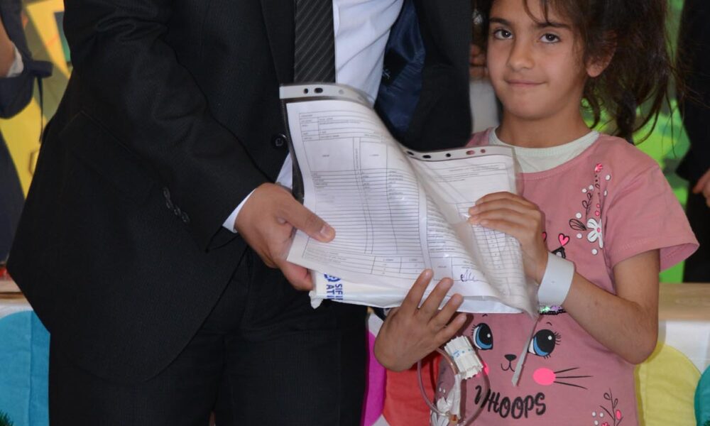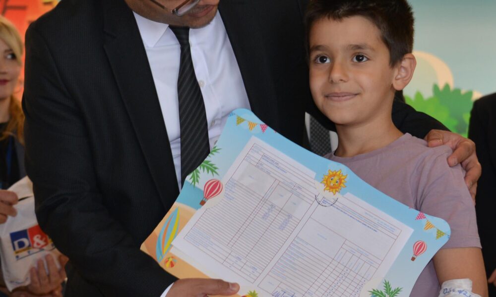 Başhekim Tör, hastanede düzenlenen törenle sınıflarını başarıyla geçen öğrencilere karne ve hediyelerini verdi, hastane çalışanlarıyla birlikte karne alan öğrencilerle hatıra fotoğrafı çektirdi.