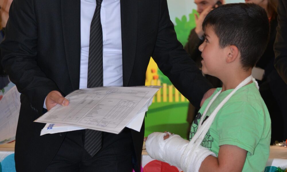 Erzurum Şehir Hastanesinde çeşitli hastalıklardan tedavi görürken Ali İhsan Kara ve Halil Elitokun öğretmenliğini yaptığı hastane okulunda eğitimlerini sürdüren 10 öğrenci için karne töreni düzenlendi. Başhekim Doç. Dr. İbrahim Hakkı Tör ile servis doktorlarının katıldığı törene anneleriyle gelen çocuklar, karne heyecanı yaşadı. Hematoloji, diyabet gibi hastalıklardan tedavi gören çocukları aldıkları karneler için tebrik eden Başhekim Tör, “Ali İhsan Kara ve Halil Elitok hocalarımız burada ilkokul öğrencilerimize eğitimlerini sürdürmelerine katkıda bulundular. Yatan hastalarımıza biz her sene böyle karne töreni düzenliyoruz. Bu çocuklarımız burada eğitimlerini aldıkları sürece sınıflarını geçiyorlar ve karnelerini almayı da hak ediyorlar. Bugün burada 10 öğrencimiz var. Özellikle yan dal servislerinde yatan öğrencilerimiz var. Bu öğrencilerimize hem karneleri ve hem de hediyeleriyle bugünlerini kutluyoruz. İnşallah daha güzel haberlerini şifayla taburcu olduklarında hep beraber kutlarız” diye konuştu.