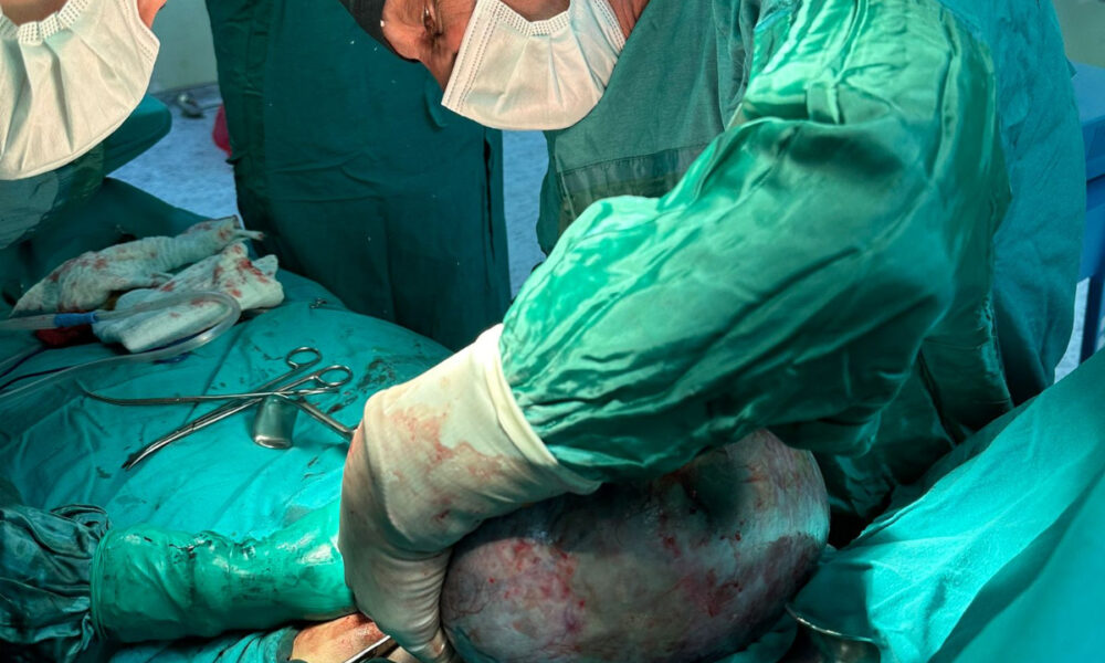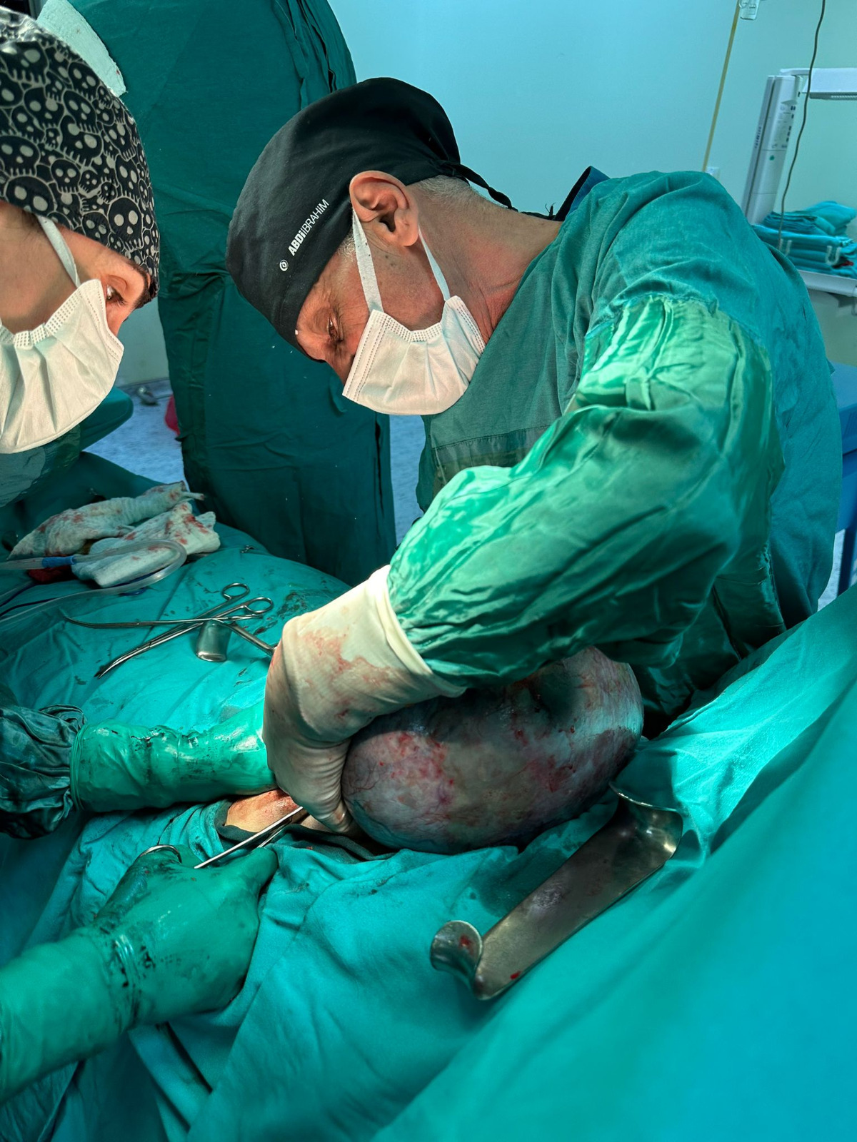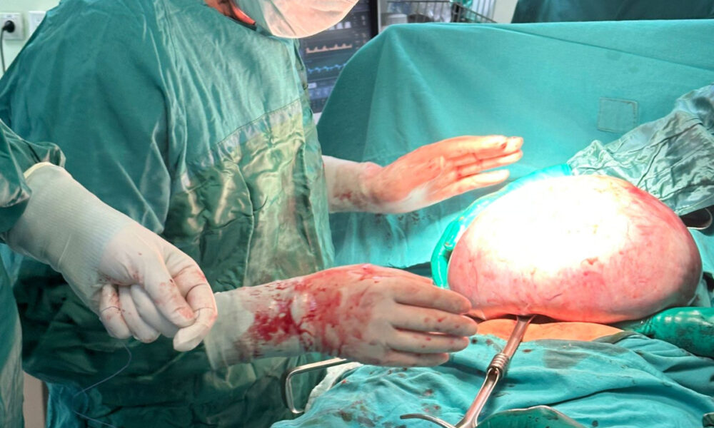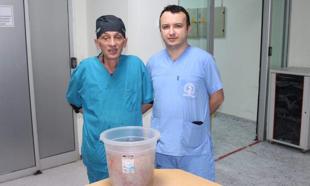 TRABZONun Vakfıkebir ilçesinde karın ve bel ağrısı şikayetiyle hastaneye başvuran Havva Kara’nın (83) karnından 10 kilo ağırlığında, 30 santimetre çapında tümör çıkartıldı.İlçede karın ve bel ağrısı çeken Havva Kara, devlet hastanesinin acil servisine başvurdu. Yapılan tetkik ve incelemeler sonucunda 4 çocuk annesi Kara’nın karnında kitle olduğu belirlendi. Ameliyata alınan Havva Kara’nın karnından 10 kilo ağırlığında, 30 santimetre çapında tümör olduğu tespit edilen kitle çıkartıldı. Başarılı operasyon sonrası sağlığına kavuşan Kara, taburcu edildi.Operasyonu gerçekleştiren Genel Cerrahi Uzmanı Op. Dr. İmdat Çıtlak, “Hastamız, karın ağrısı şikayetiyle hastanemizin aciline müracaat etti. Acilde yapılan muayenesinde karnında kitle olduğu tespit edildi. Bu nedenle görüntüleme tekniklerine başvuruldu. Çekilen MR görüntüsünde sol overden kaynaklandığı düşünülen yaklaşık 30×30 santim ebatlarında gizli kitle tespit edildi. Hastanın ameliyatına karar verildi. Anestezi uzmanları tarafından hastanın yaşlı olması nedeniyle vakanın riskli olduğu ifade edildi. Anestezi doktorumuz Atakan Aşkın Bey sağ olsun, hastayı başarılı bir şekilde uyuttu. Yaptığımız operasyonla kitleyi tamamen çıkardık ve hastamız sağlığına kavuşmuş oldu” dedi.Hasta yakınları da başarılı operasyonu gerçekleştiren Genel Cerrahi Uzmanı Op. Dr. Çıtlak, Anestezi Uzm. Dr. Atakan Aşkın ve ekibine teşekkür etti.