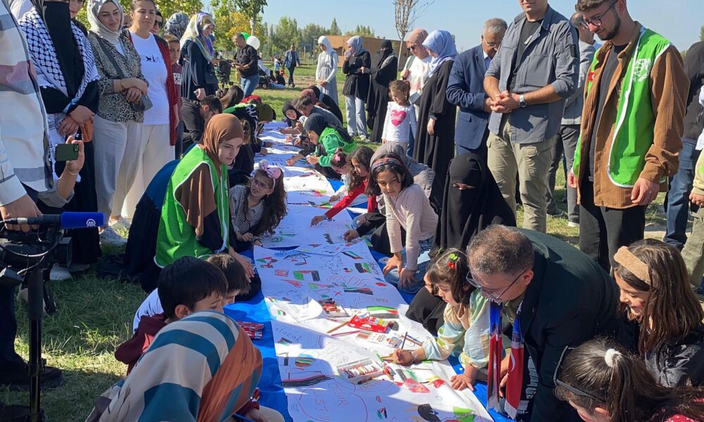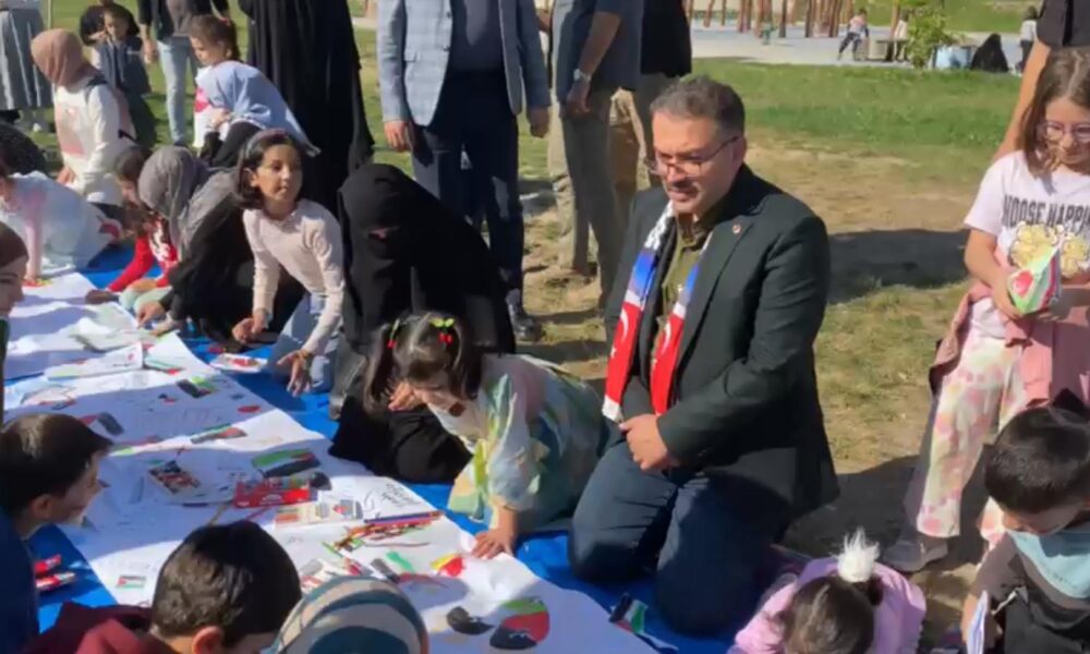 Kars'ta ve Iğdır’da, İsrail'in Gazze'ye yönelik süren saldırılarını protesto etmek ve savaşın mağdur ettiği Filistinli çocuklara destek vermek amacıyla ‘Filistinli çocuklar için çiz’ etkinliği düzenlendi. Fotoğraf: Suat DENİZ / Iğdır,(DHA)