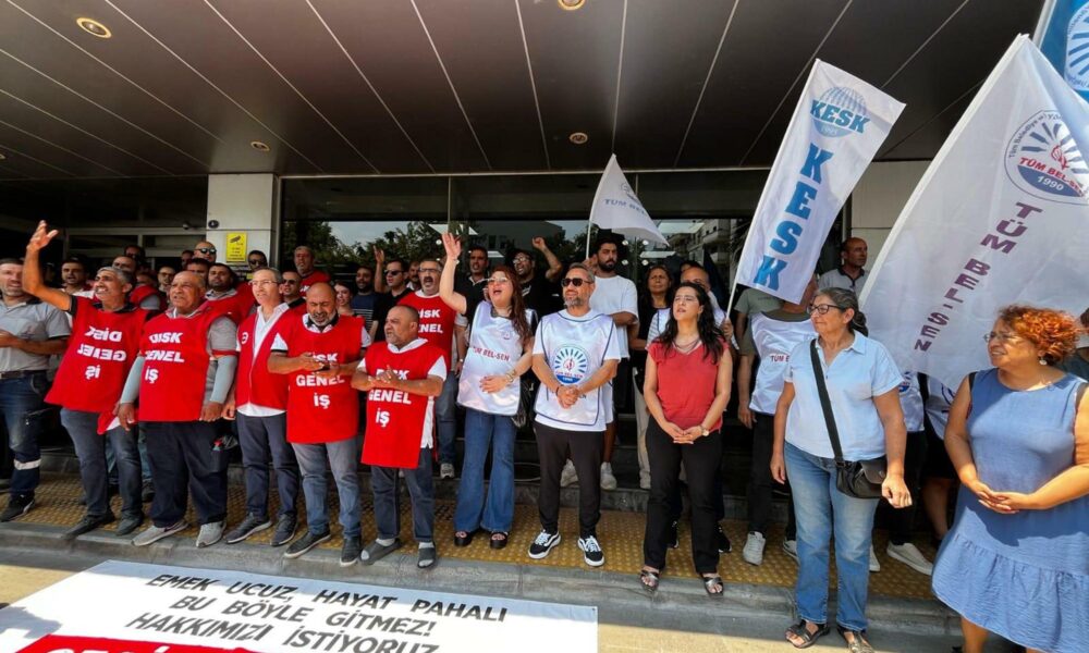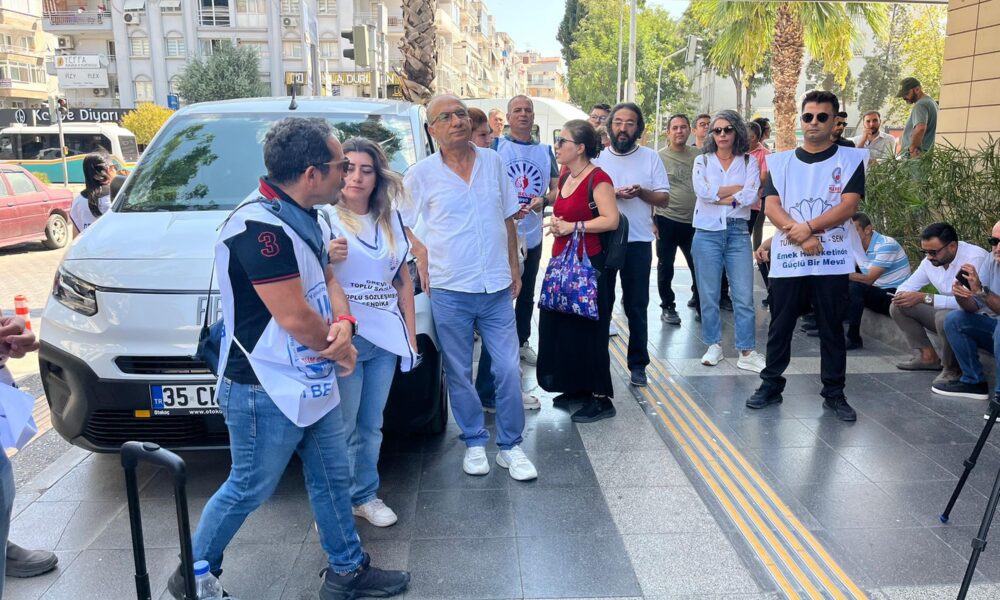 Tüm Bel-Sen 2 No’lu Şube Yöneticisi Fırat Belen de “Karşıyaka Belediyesi’nde kamu emekçilerinin mücadelesi 15 gündür sürüyor. Saat 10.00-12.00 arasında hizmet üretmiyoruz. Cebimizden aylık 22 bin lira kesilmeye başlandı. Mücadelemiz hakkımız olan ücretleri almamıza ve yeni kazanımların yolunu açacak. Başta korku duvarı vardı, o duvar yıkıldı. Arkadaşlarımızın gözünde çekince yok. Tutanak, soruşturma, ceza tehdidi bizi yıldırmaz. Bu mücadele birleşerek büyüyecek, bunu başaracağız” diye konuştu.