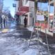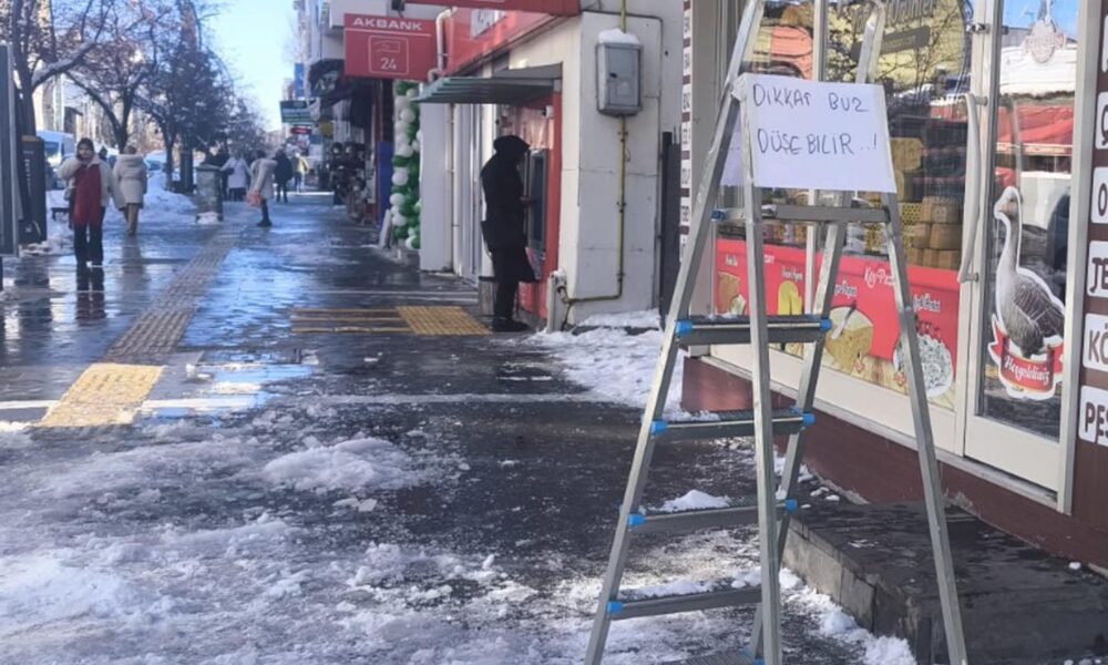 Çatısından sarkan buzların risk taşıdığını fark eden esnaf, dükkanının önündeki kaldırıma bir merdiven yerleştirdi. Merdivenin üzerine büyük harflerle Dikkat buz düşebilir yazılı kağıt asan esnaf, yayaların saçak altından geçmesini engellemeye çalıştı.
