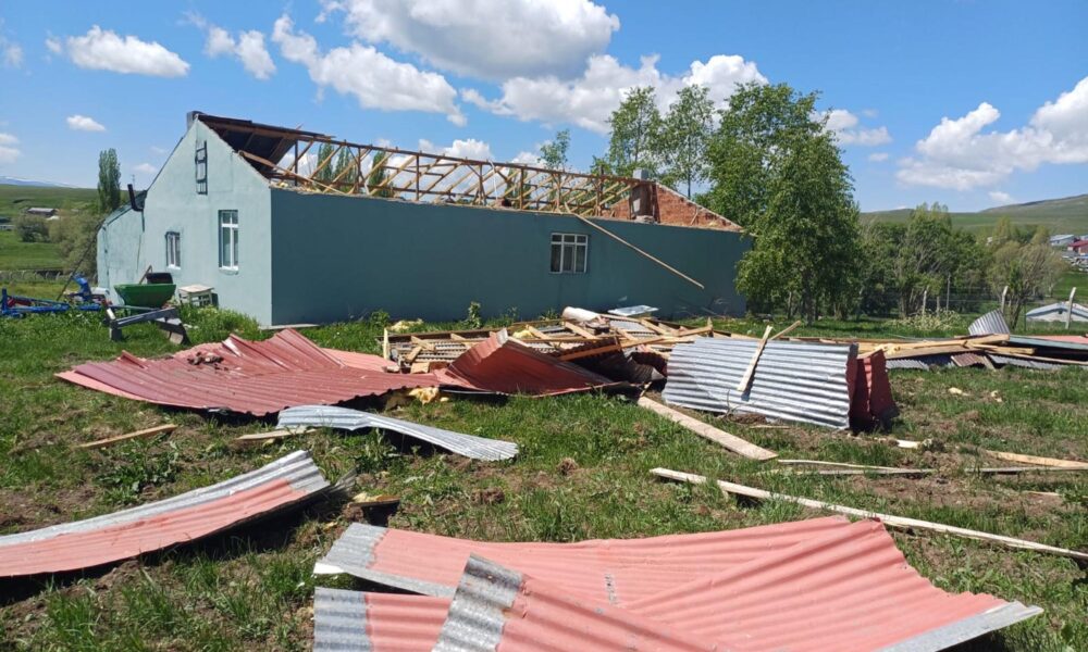 Kars’taki fırtınada 8 ev ve 3 ahırın çatısı uçtu