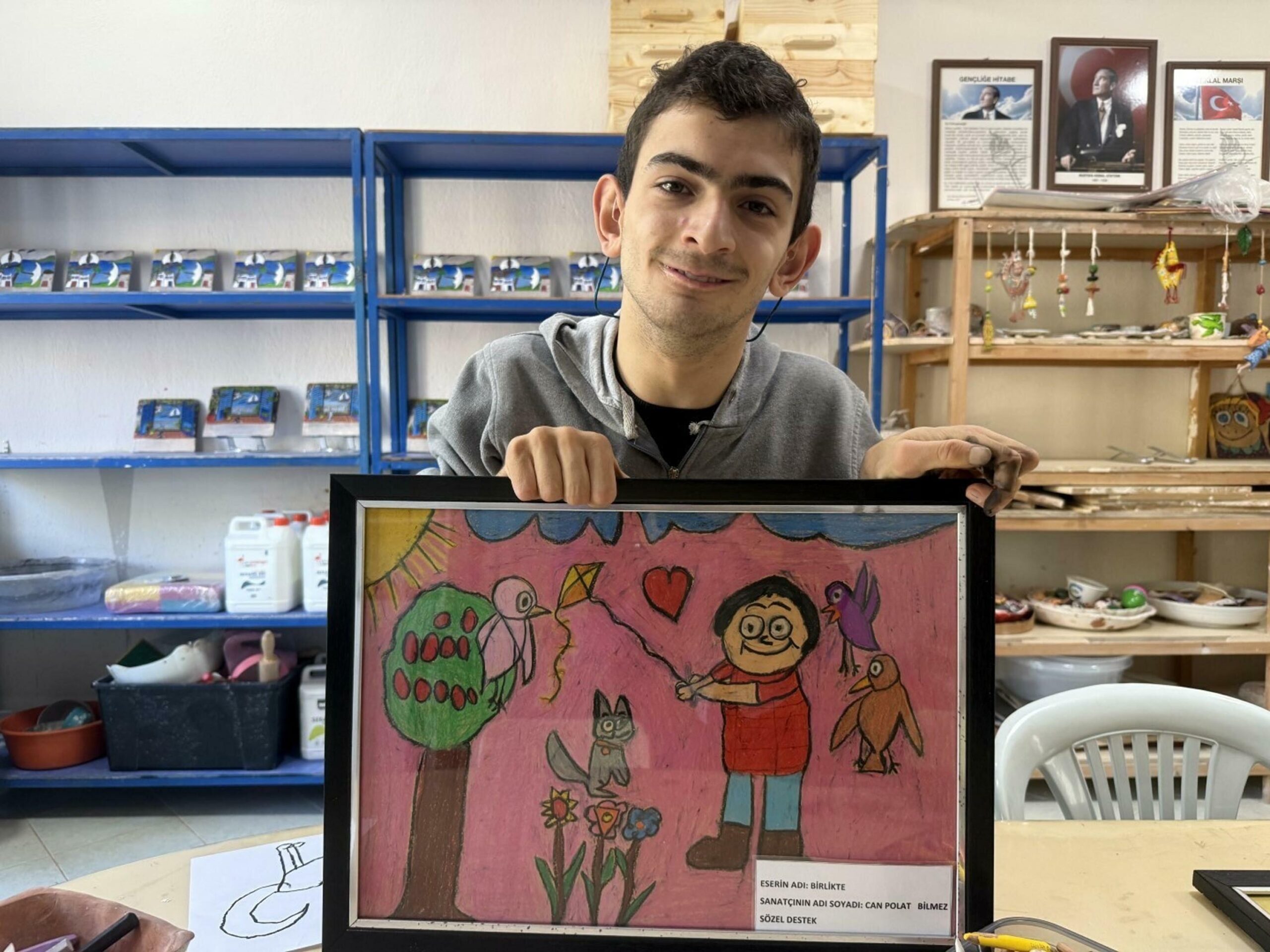 Bodrum ilçesinde konuşma güçlüğü bulunan kas hastası Can Polat Bilmezin resim yeteneği, eğitim gördüğü Yahşi Özel Eğitim Uygulama Okulunun 3üncü kademesinde keşfedildi. Küçük yaşta geçirdiği sarılık sonrası yapılan kan değişimi sırasında beynindeki damarın oksijensiz kalması nedeniyle kas hastalığına yakalanan Bilmez, 9 yıldır devam ettiği okulunda hem sanatla hem de sosyal etkinliklerle hayata tutunuyor. Can Polat Bilmezin okulda resim çalışmalarına katılarak yaptığı eserler, öğretmenlerinin ve arkadaşlarının beğenisini topluyor.