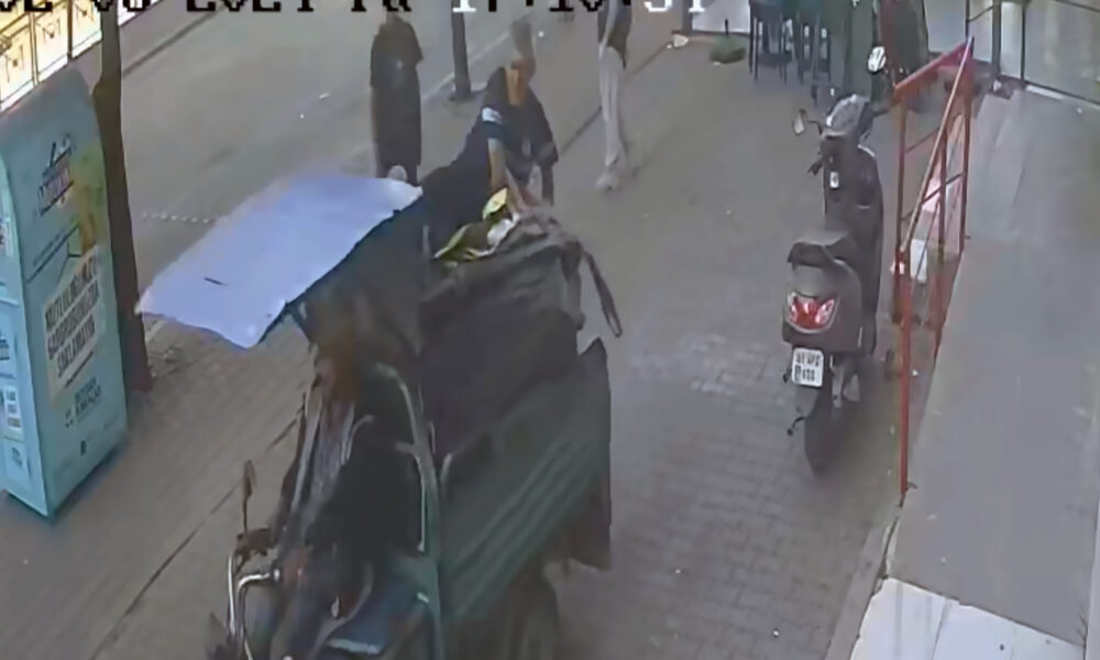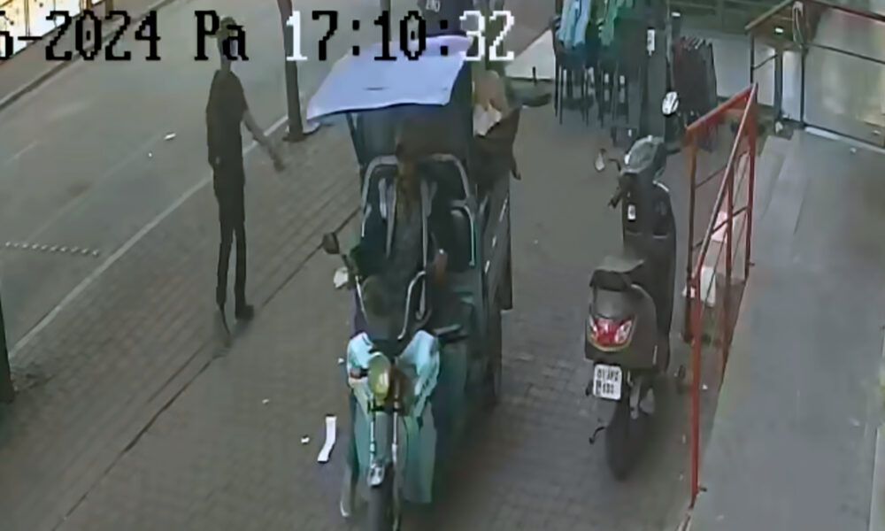 Kasadaki kağıt toplayıcısını fark etmeyip, motosikleti çaldılar; o anlar kamerada