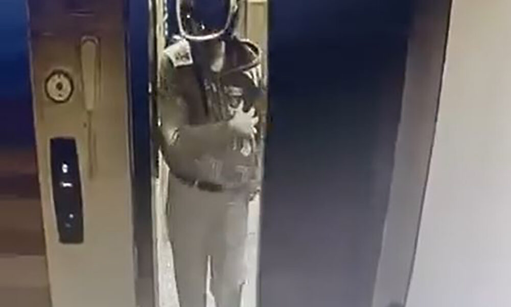 Kaskla apartmana giren şüpheli idrarını yapıp, damdaki kuşları çaldı; o anlar kamerada