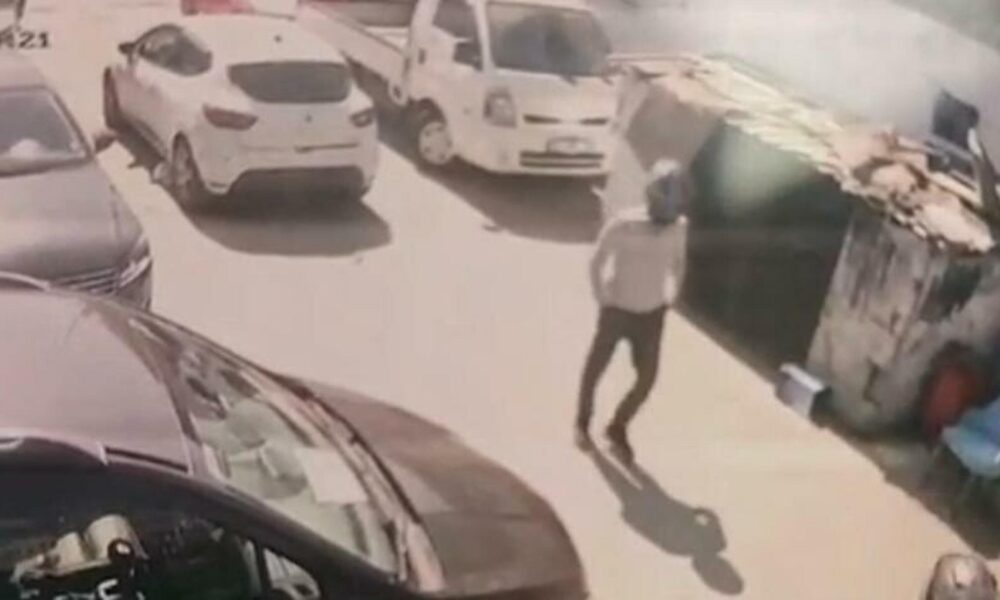 Olay anı güvenlik kamerasına yansıdı. Görüntülerde, şüphelilerin beyaz bir otomobille kafalarında kaskla indikleri ve soygun yaptıktan sonra yine aynı arabayla kafalarında kasklarla kaçtıkları görülüyor.