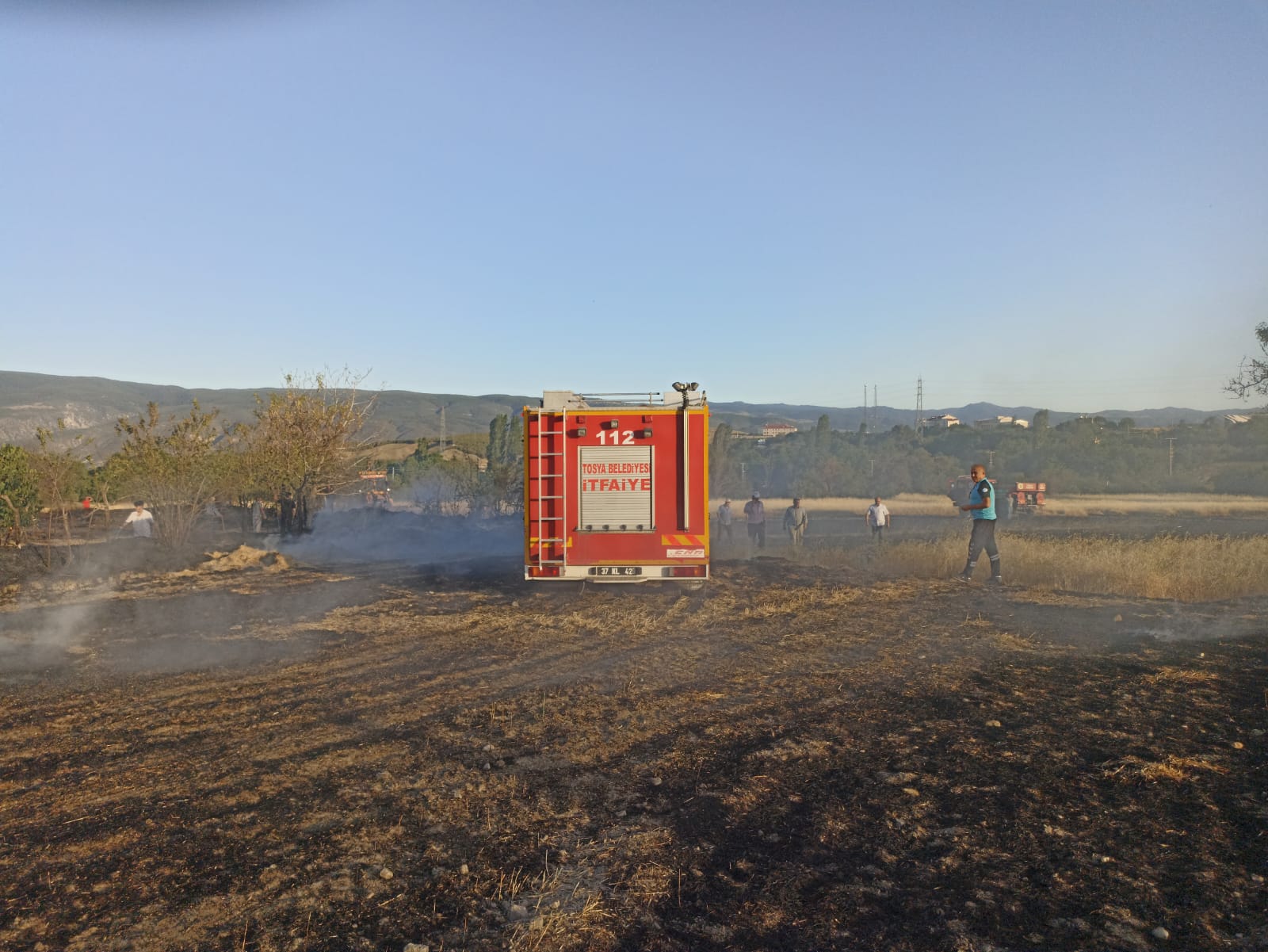 Yangın, saat 19.00 sıralarında Tosya ilçesi Yunus Emre Mahallesinde bulunan bir tarlada meydana geldi. İddiaya göre H.Ç.ye ait tarlada başlayan anız yangını, bir anda yan tarafta bulunan İ.T.ye ait saman balyalarının olduğu tarlaya sıçradı. Kısa sürede büyüyen alevler tüm tarlayı sardı. Dumanı gören çevredekilerin ihbarı üzerine olay yerine itfaiye ve Tosya Orman İşletme Müdürlüğü ekipleri sevk edildi. Ekiplerin yaklaşık 1 saatlik çabası sonucu yangın söndürülerek, soğutma çalışmaları başlatıldı. Meydana gelen olayda 4 dönüm tarla yanarken, 100 adet saman balyası da alevlere teslim oldu. Yangınla ilgili inceleme başlatıldı.