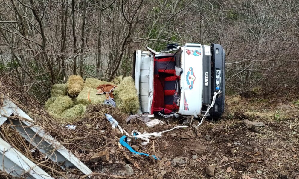 Kastamonu’da saman yüklü kamyon devrildi: 2 yaralı