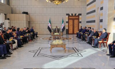 Suriye Cumhurbaşkanı Ahmed Şara, Birleşmiş Milletler Güvenlik Konseyi (BMGK) üyesi Çin, ABD, Rusya, İngiltere ve Fransa’nın da bulunduğu 15 ülkenin temsilcilerinden oluşan heyeti başkent Şam’daki Halk...