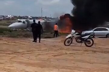 Kongo Demokratik Cumhuriyeti’nin Lualaba eyaletindeki Kolwezi Havalimanı’nda, Maden Bakanı Louis Watum Kabambanın da aralarında olduğu yaklaşık 20 kişilik heyeti taşıyan uçak iniş sırasında pistten çıkarak alev...