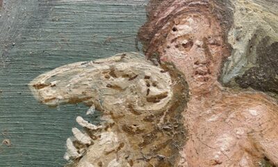 – İtalya’da MS 79 yılında Vezüv Yanardağı’nın aniden patlamasıyla lav ve volkanik küller altında kalan antik Roma kenti Pompeii’de, renkleri nispeten az zarar görmüş duvar resmi...