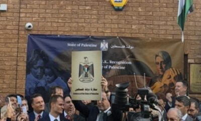 İngiltere’nin, Filistin’i devlet olarak tanımasının ardından Londra’da Filistin elçiliği açıldı. Elçilik binası önünde düzenlenen törenle Filistin bayrağı göndere çekildi. GÖRÜNTÜ DÖKÜMÜ —————————– – Londrada Filistin elçiliği...
