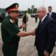 Milli Savunma Bakanı Yaşar Güler’i, Hanoi’ye gelişinde Vietnam Genelkurmay Başkanı Yardımcısı Tümgeneral Nguyen Ba Luc, Türkiyenin Hanoi Büyükelçisi Korhan Kemik, Askeri Ataşe Albay Özgür Bülent Us...